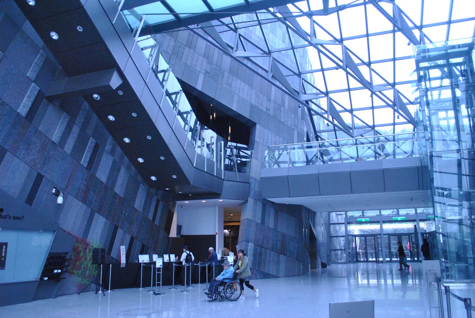 The architect has almost imbibe the natural form the the island. The formal language of museum is reminiscent of high modernism of 1960’s esthetically reminder of early work of I.M Pei and Philip Johnson. The form is precisely chiseled out with precision of almost close to aircraft technology. Every detail of building is destined to follow the matrix that has be set by the system. Its some kind of involute trap that high modernist were engulfed. Every metal panel and granite slabs fits accuretely as it can be in it’s position with no margin of error.