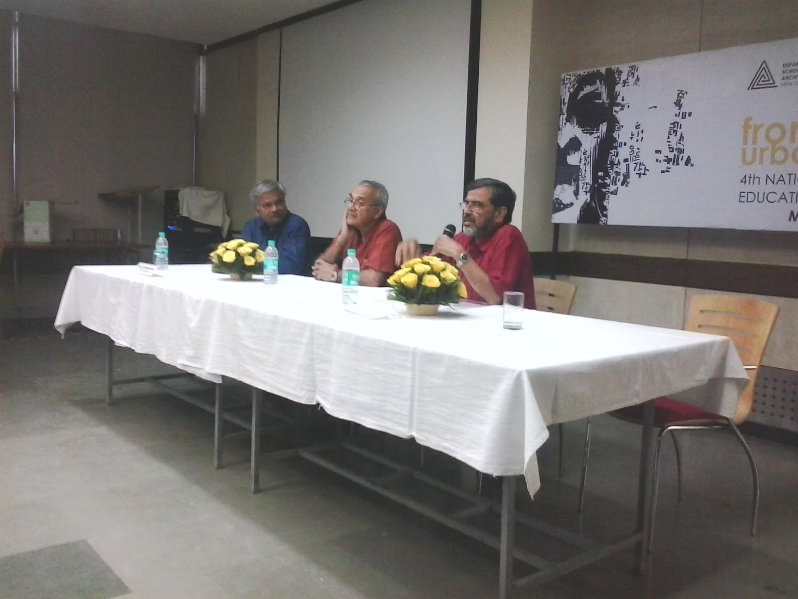 The first day began with the Urban Design Thesis presentation from all six institutes. The nature of projects varied as far as context concerned but the quality of inquiry remained fairly uniform throughout. The nature of intervention always remained suspended or left ambiguous. The discussion resulted into larger domain of Urban Design i: e values of design in urban to policy formation. The various components argued out but to my mind they may remain unarticulated or unattended from design point of view.