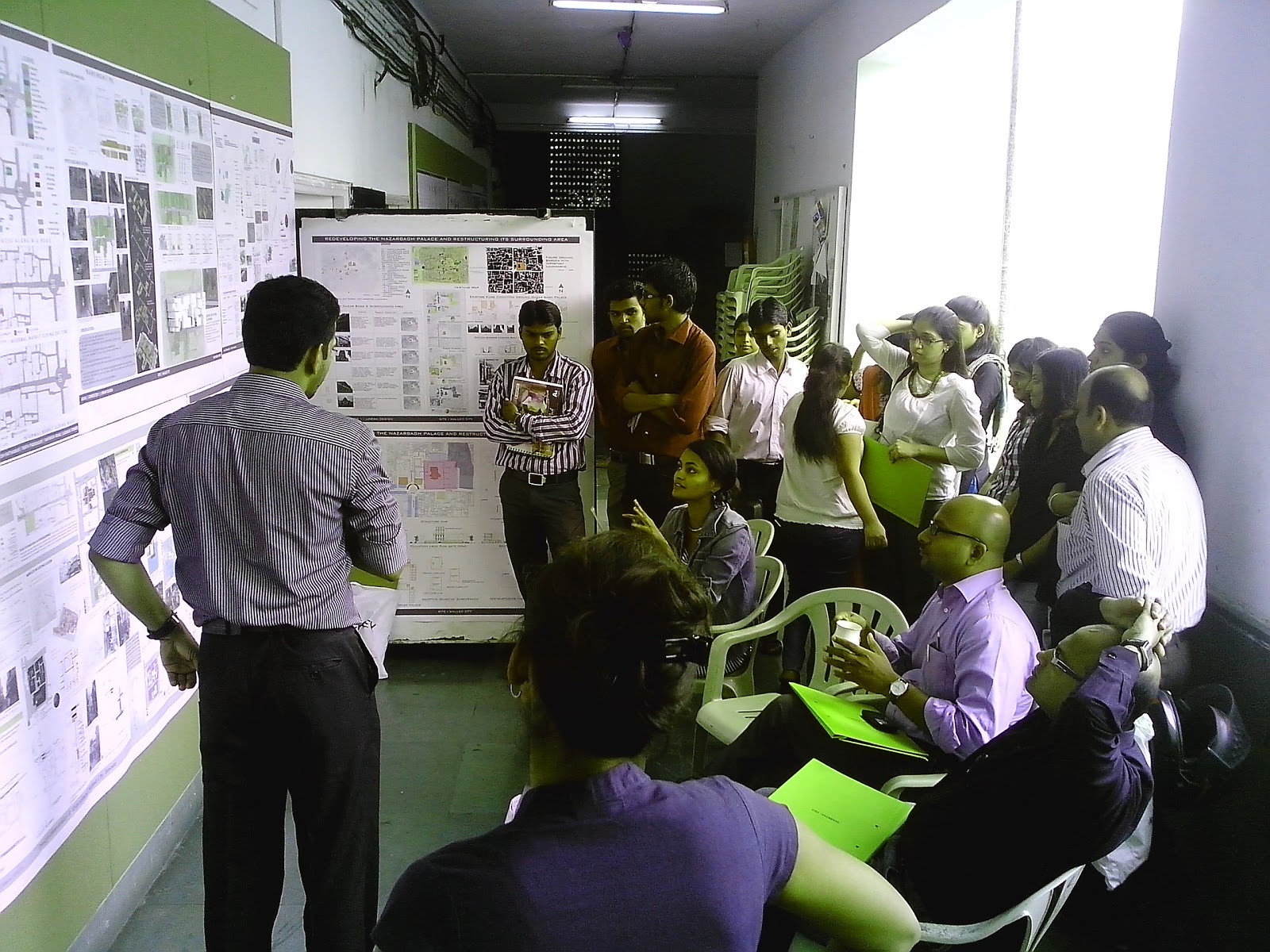 The idea of mapping & reading is synonym to sensing or comprehending the events but in cartographic manner. The reading of city through the cartographer lens is always a challenge. The Baroda studio exercise through its layered history brought out the complex dynamics of legal system, institutional system and retail system & strange domesticity that merges with the rest of the city. The stretch of over two kilometer had all the complexity that is a pre condition to the introduction of studio assignments. The shifts from architectural thinking to urban thinking take its own time in reaction and delineation. The studio task was appeared to have received with excitements and energy. The body of documentation and representation has attained some level of competence. The composition of jury made the session even more complex as each of them had his/her area of emphasize. The issues emphasized were ranging from understanding of pattern vs. Resources as a planner or relationships beyond the building as an urban designer or vision & imagination as architectonic icons.