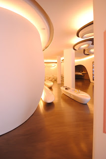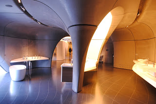 The Roca Museum in London is non- celebrated interior project by her. The large space is divided into module of spaces with seamless and sensuous form (partly existing structural elements). Each time single space is captured from multiple points, revealing the dynamic tectonics in motion. The principal aesthetic dwelling on futuristic imagination of architecture of Vigor, speed and its militant objectivity, characterizing the forces that architecture exerts on us. Sometime such forces are acknowledging, sometime contradicting or cancelling, resulting into sensuous and hedonistic world view of aesthetic experience.