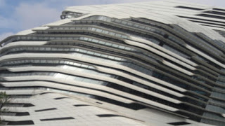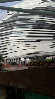 The recently opened Innovation tower building in Hon kong Polytechnic University is fine example of contemporary building practice by Zaha Hadid. The building has spectacular presence in central open space where existing buildings have their dated presence of modernist era. The eccentric cascade of fluid form draws the attention among the brick