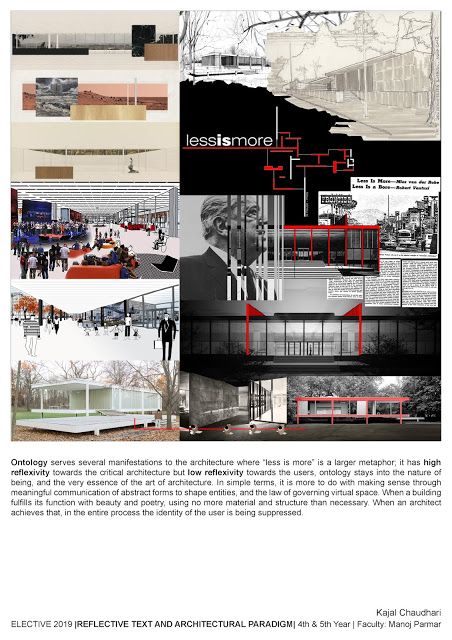 The elective course at Krvia explores the idea reflective text of dominant school of thought subjecting to comparative understanding with philosophical domain. The critical agenda expands into the understanding of reflexivity. How an individual/ institutional high or low reflexivity towards specific aspects of architecture is negotiated with context and what probable outcome that were necessitated as an imperative.