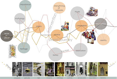 This thesis addresses the fact that physical boundaries of built objects are blurred as streets weave together the edge of these objects. The thesis investigates into the cultural value of streets and the activities that create a sense of place. It aims to enquire into the role conservation can play in the streets of the old city of Mathura to reaffirm the sense of place to allow the continuity of its image and identity