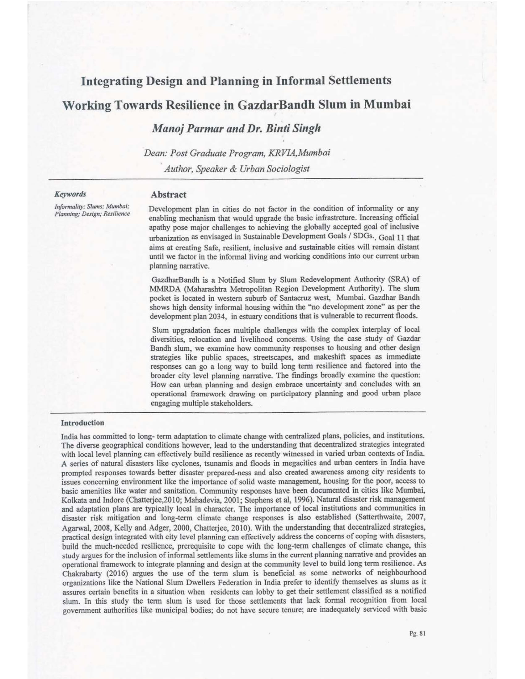 Integrating Design and Planning for Informal Settlement in Mumbai