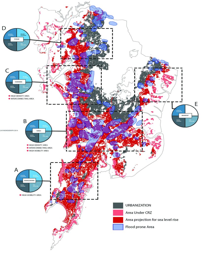 These issues when combined with the previous records of chronic flooding show us that there are 5 areas within Mumbai which are most vulnerable – Mahalkshmi, Kurla, Oshiwara, Poisar and Bhandup. All of them face coastal, riparian and spot flooding along with the rising threat of sea level rise. Oshiwara stands out when compared against other sites for other environmental, physical and social vulnerabilities.