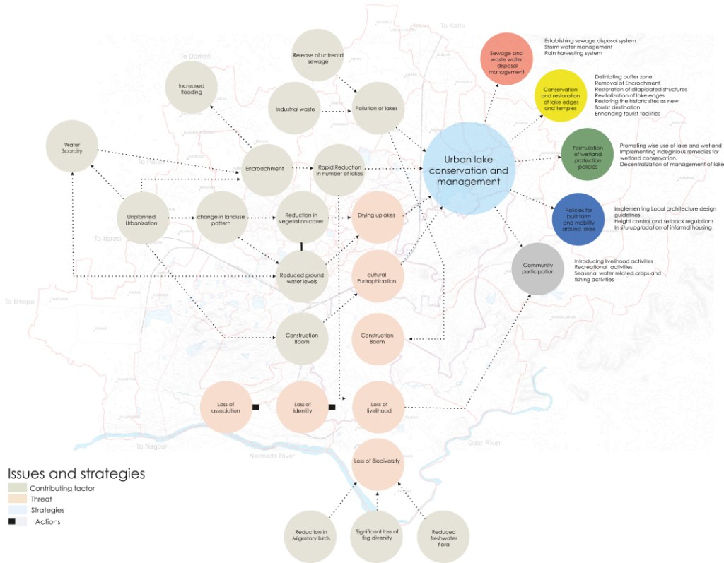 The aim was to study such intrinsic historic relationship and its subsequent transformation over a period of time with the new emerging changing dynamics between city, people and existing water bodies through the lenses of its historic values, and transformation process through urban conservation. It has to re-established the lost historic, spiritual and ecological value towards urban water bodies in lake city of Jabalpur by deriving a socio-ecological approach towards water bodies and its geographical situation. Through the Urban Lake conservation and management framework it is going to rejuvenate and establish the new interactions between people, water bodies and its historicity which will further lead to the conservation of such important ecological features. This study shall demonstrate that how important urban feature like water bodies in dense historic setup can be used to restore the values as well as create awareness about its significance in ever transforming urban situation and second tier city like Jabalpur.