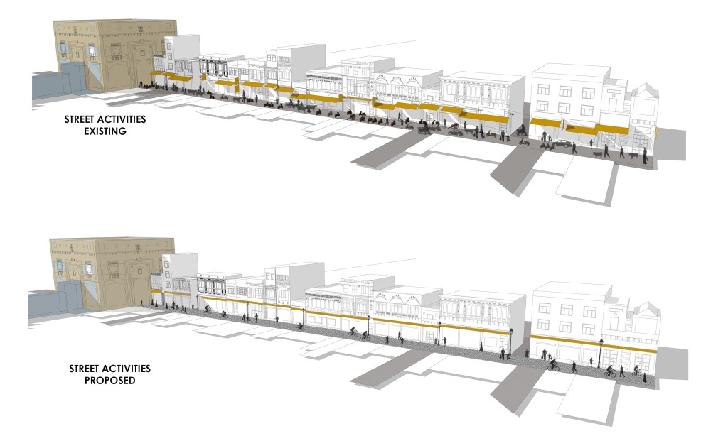 The proposal is to revive the route and the chowks lying within the route. This was done by maintaining the street character and introducing activities within them. The proposed routes are for the tourists and community both. Adaptive reuse was proposed in the vacant structures surrounding the chowks. All this will help the historic core socially as well as economically.