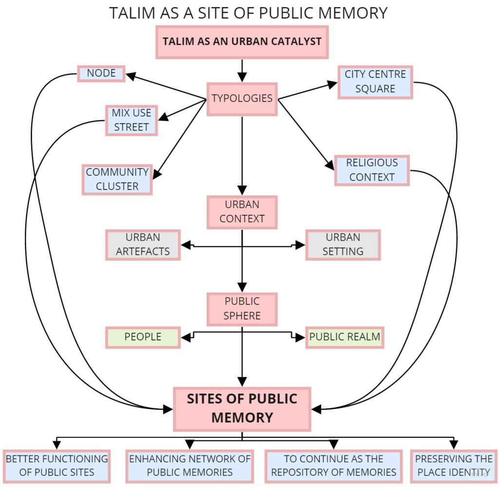 The Memories which have also been on a shifting terrain have been considered as subjective and cannot be treated in isolation. So the Talims in the city is acting as urban catalysts w.r.t typologies identified in the urban context. These Talim typologies being an idea of social space and sites of public memory act as an urban impulse to the site conditions. Lastly, Talims have never had the type of built significance endorsed by conventional conservation practice but they have always allowed for a sense of community cohesion and w.r.t activities, network, location and thus embracing the idea of Robust evolutionary form of Talims and the continuation of memories associated by connecting generations through which it is possible to activate the public sites where the historic events are unfolded, and the past, present and future dimensions of the inhabitants of the historic cities are preserved.