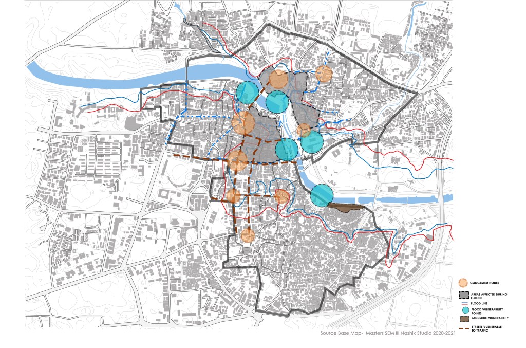 Nashik is one such case which based in the Triambak hills, forming one natural setting to base the mythology of the city in. It is one of the four sites for the Kumbh Mela deeply rooted in mythology of it being visited by Rama on his way to Lanka. Thus it became a venerated spot over time with factual and mythological associations and eventually being called the Varanasi of the south. River Godavari elevated to the status of holy river Ganga, thus the riverfront and surrounding precinct serve to the sanctify the sacredness of the city. Tucked away between the 9 peaks of the Deccan Plateau, this city holds great historical, mythological, cultural, and social significance in India. The combination of indigenous and religious culture makes Nashik a rich territory where multiple cultural resources interact. Ecology of Godavari and the 9 teks in the historic core are significant aspects to majorly focus upon as it contributes to the religious identification of the city.