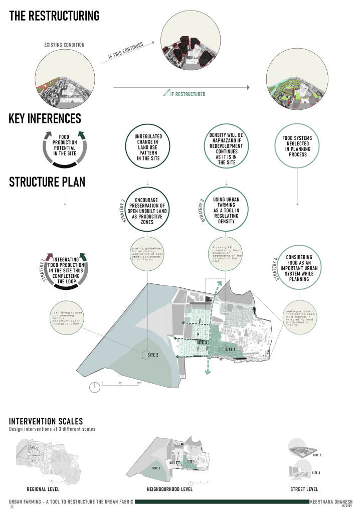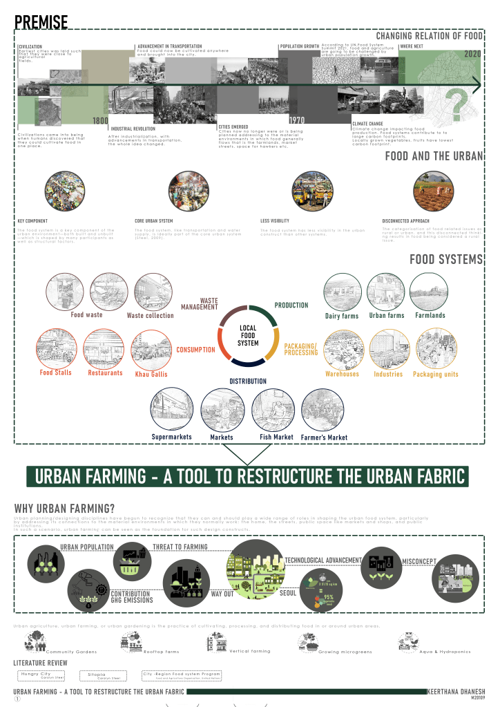 This thesis aims in understanding the role of food in the city in today’s times. It intends to re-emphasize this important relationship between food systems and the urban form and then use Urban Farming as a tool to restructure the city fabric.