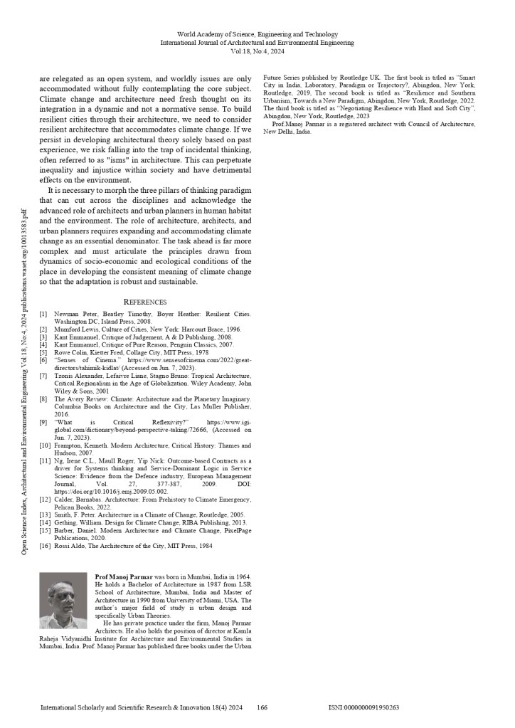 Download the Article: https://publications.waset.org/10013583/architectural-thinking-in-a-time-of-climate-emergency