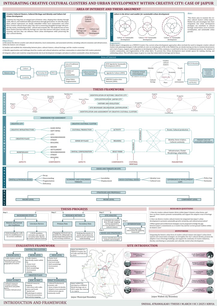 Within this context, the thesis Integrating Creative Cultural Clusters and Urban Development within a Creative City: Case of Jaipur examines Jaipur, a UNESCO World Heritage Site and Creative City of Crafts and Folk Art. Focusing on the walled city, the study explores how integrating creative cultural clusters into urban development can support heritage conservation, socio-economic revitalization, and sustainable urban growth while responding to contemporary challenges.